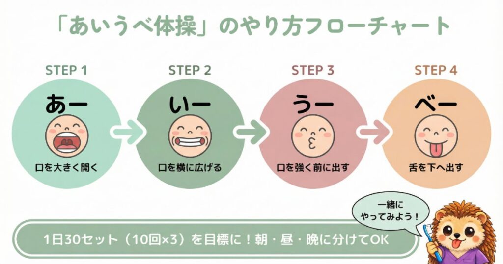 あいうべ体操4ステップ。毎日の習慣にしてみましょう!