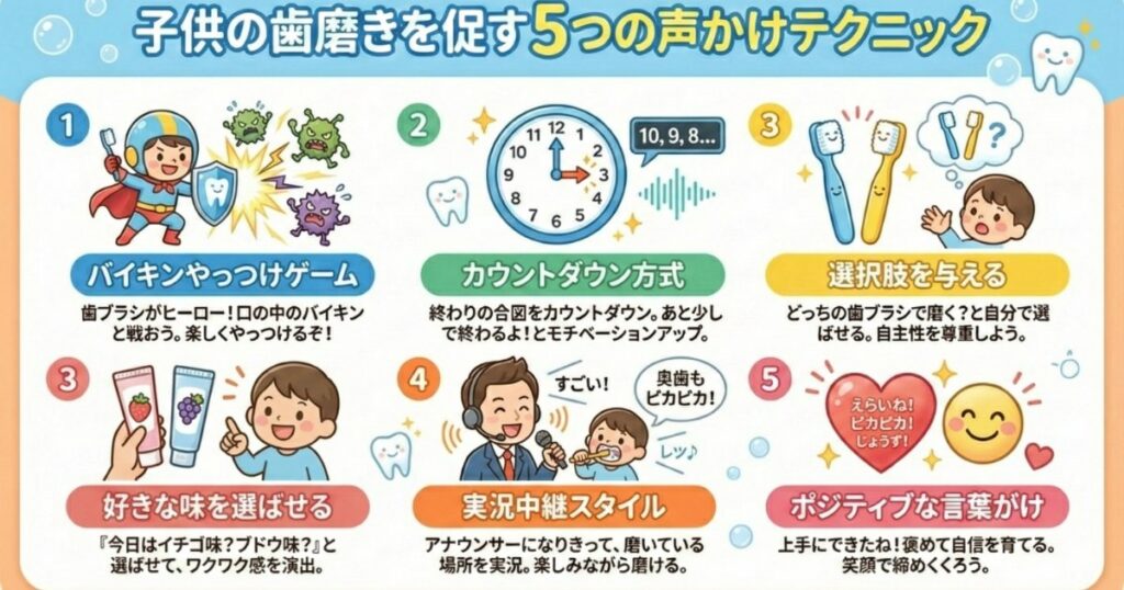 仕上げ磨きで大切なのは、「楽しい時間」として子どもの記憶に残すことです。今日ご紹介した5つの声かけテクニックは、明日からすぐに実践できるものばかり。